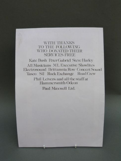 Kate Bush in aid of Bill Duffield 1979 fold out concert programme