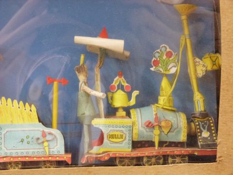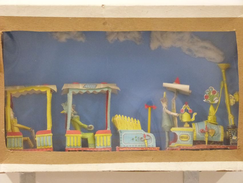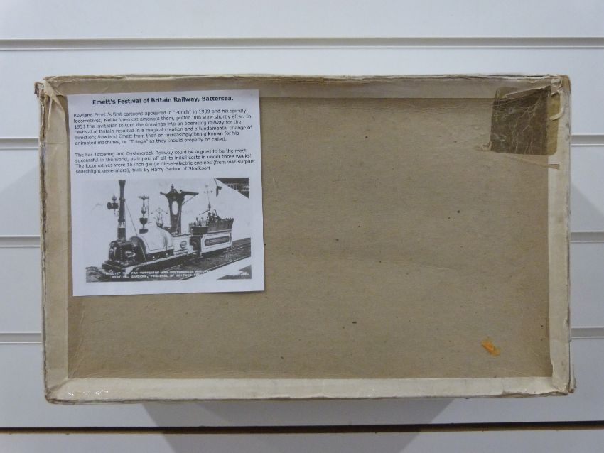 Rowland Emett cardboard Festival of Britain model train in display box, length 41cm