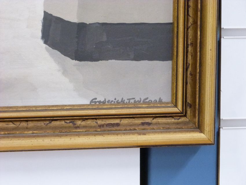 Frederick T W Cook (1907-1982) framed watercolour, Cornish harbour scene Polperro, signed lower right, 47 x 74cm