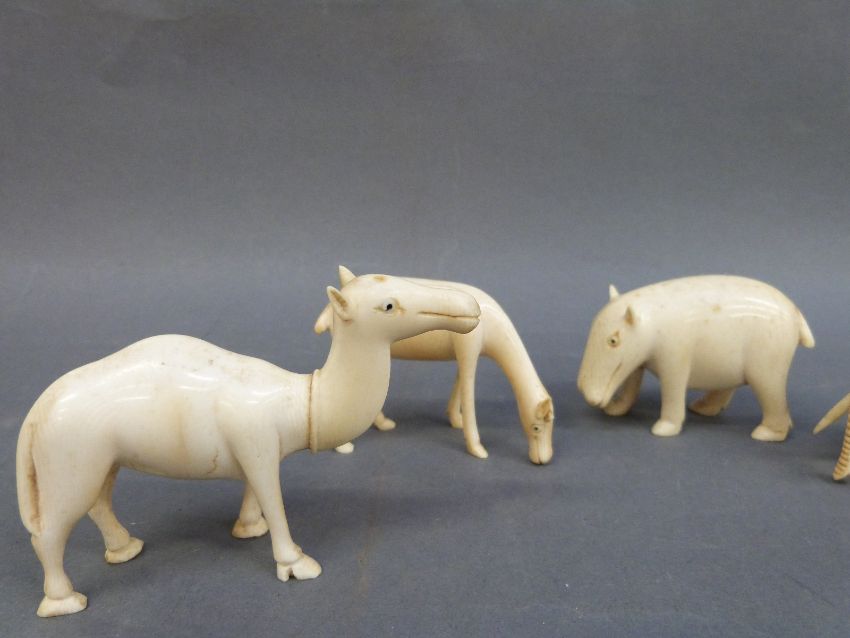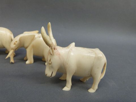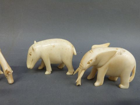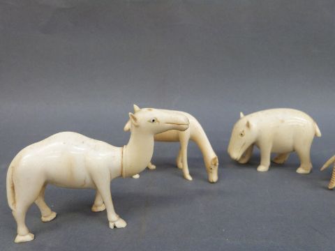 A collection of carved ivory animals circa 1920's