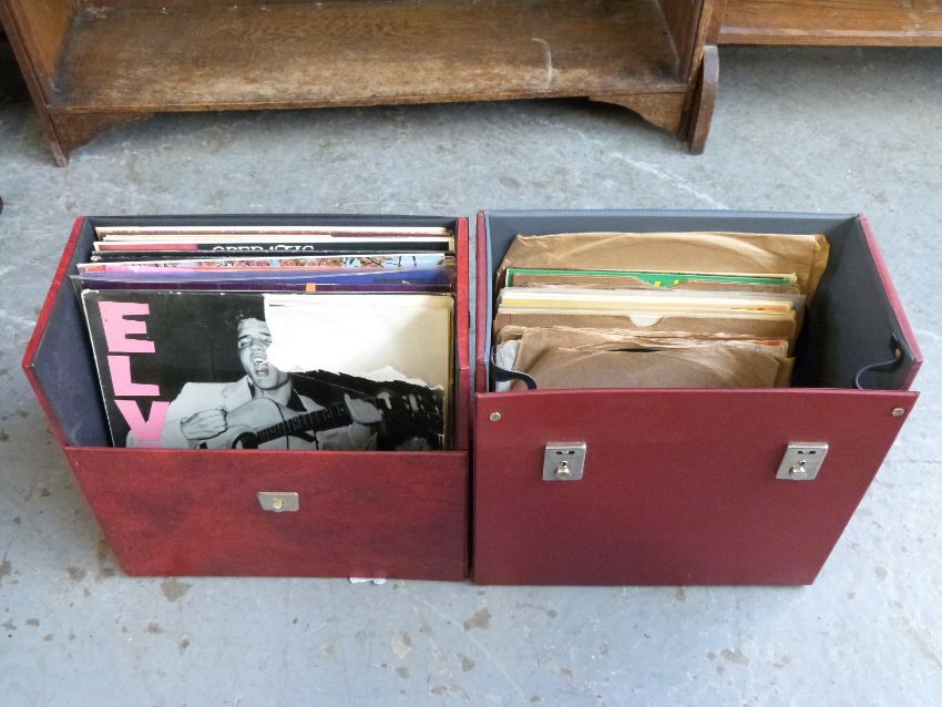 Two cases of LPs, EPs and 78's including Elvis Presley 'Rock and Roll' (CLP 1093) cover ripped and piece missing in top right corner, vinyl in very good condition, together with three Elvis Presley 78's