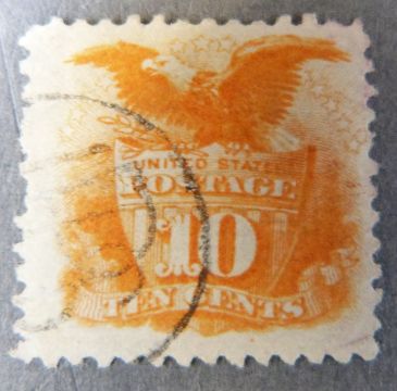 USA 1869 10 cent orange (Shield and Eagle) used.
