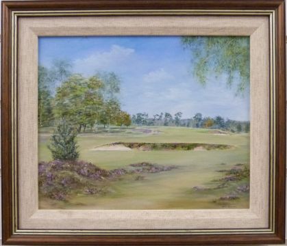 Jean Renshaw oil on board of a golf course, 23 x 29cm