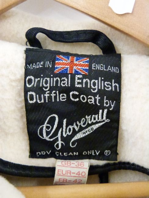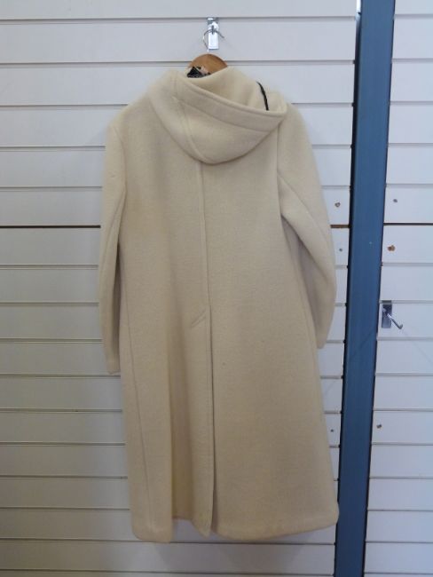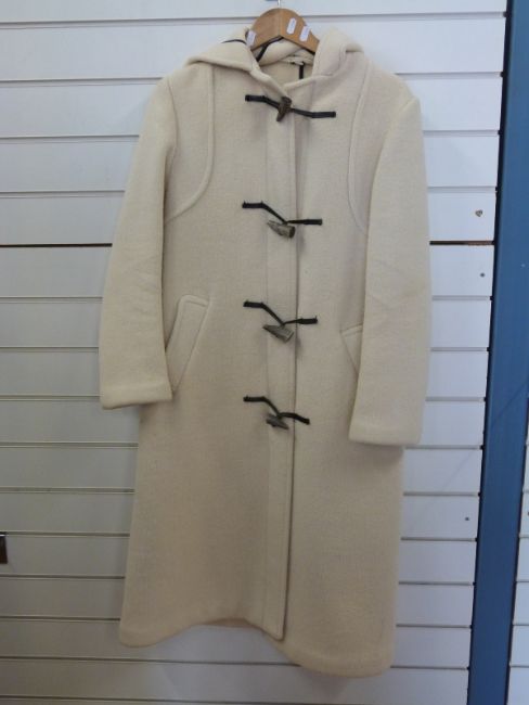 A cream wool ladies full length duffle coat by Gloverall, Size 36