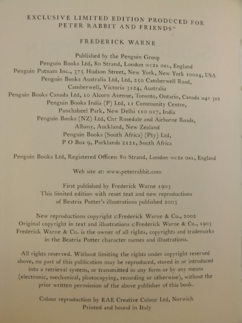 Beatrix Potter The Tale of Squirrel Nutkin, Anniversary edition by Warne 2003 limited to 100 copies bound in white Italian leather with silver lettering and colour illustrated front