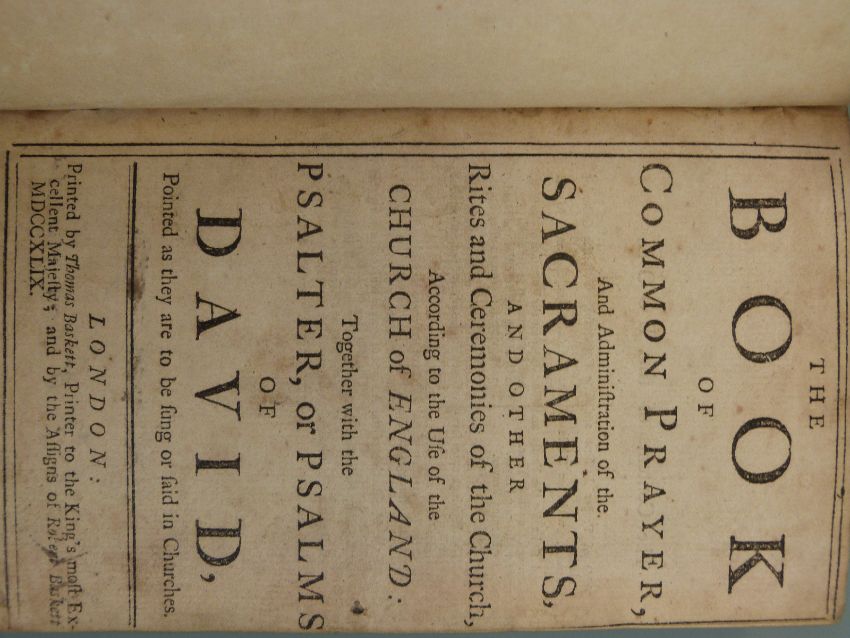 The Book of Common Prayer and Administration of the Sacraments…According to the Church of England, Together with the Psalter, or Psalms of David, London 1749 bound in leather
