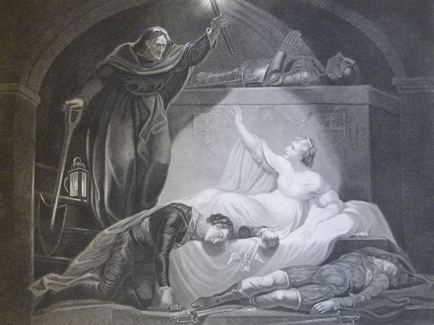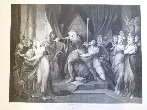 Five late 18thC/early 19thC Boydell Shakespeare engravings, three Romeo and Juliet and two King Lear.