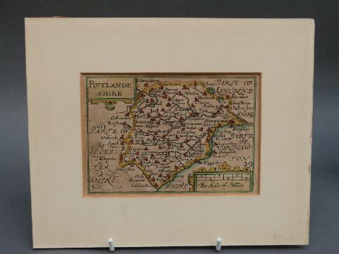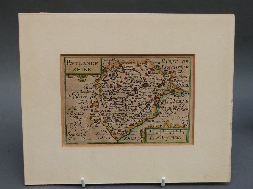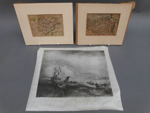 Two 17thC John Speed maps Rutlandeshire (Rutland) and Connock, each approximately 10cm x 12.5cm together with a maritime print