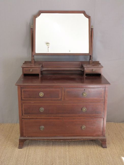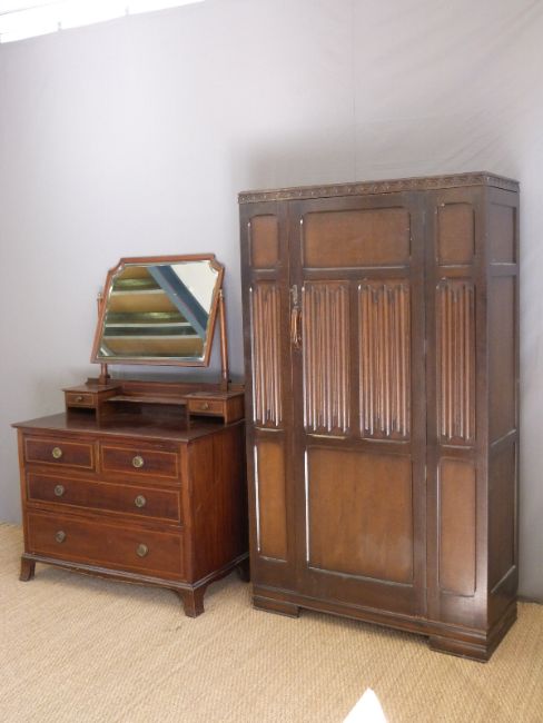 A late 19thC/early 20thC dressing table (H165 x W107 x D56cm) and oak wardrobe (H185 x W107 x D45cm)