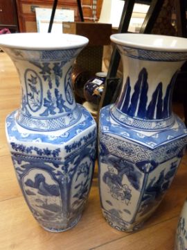 Three Chinese blue and white vases and a large Chinese fish bowl