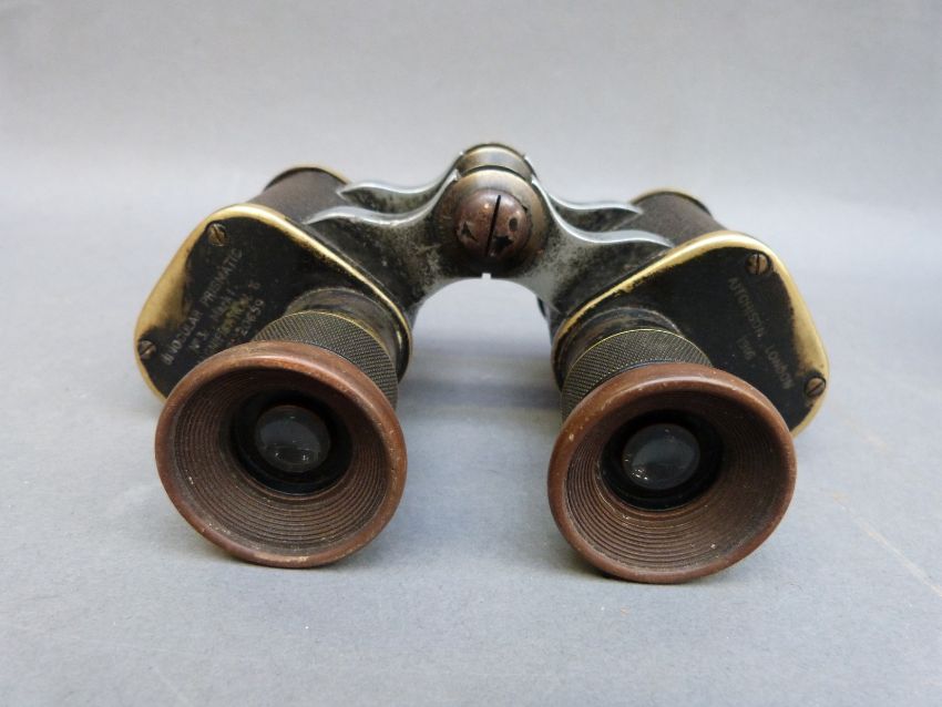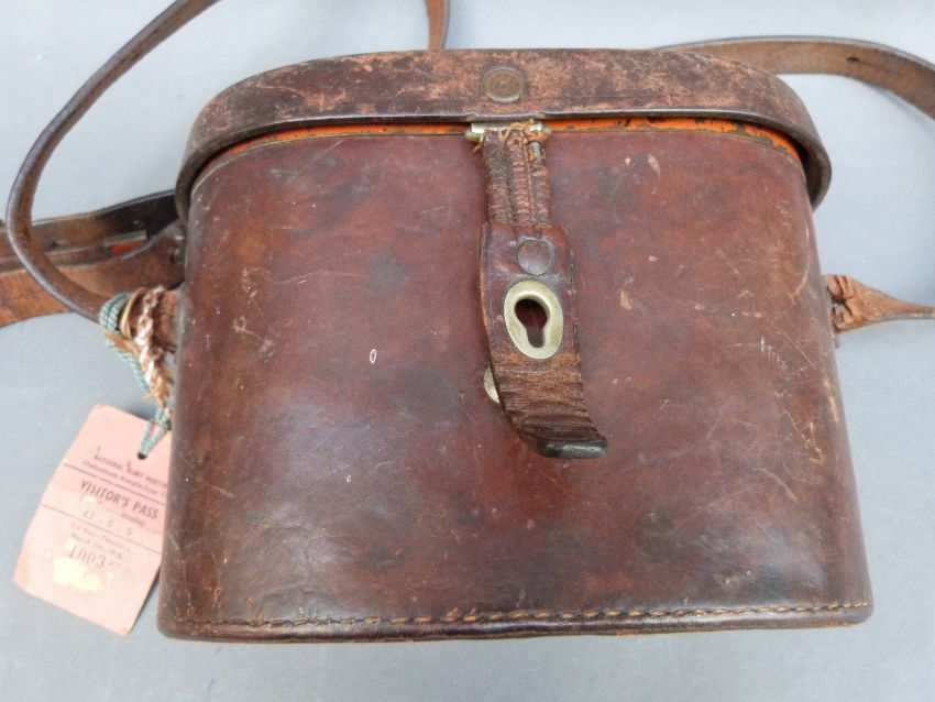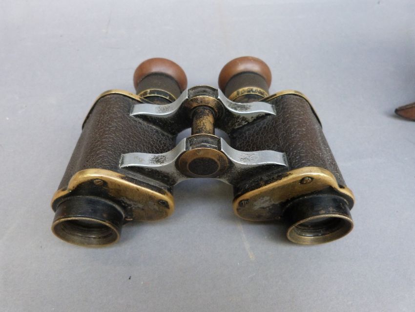 Aitchison London prismatic Binoculars dated 1916, MK1 No 20639 in original black leather case with C1960's racing purses including Cheltenham.