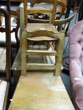 Two painted country chairs and a child's elm chair