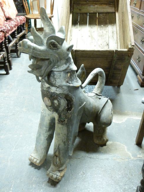 A large metal model of a Chinese Dog of Fo, with agate cabaochon to front and mirrored panels