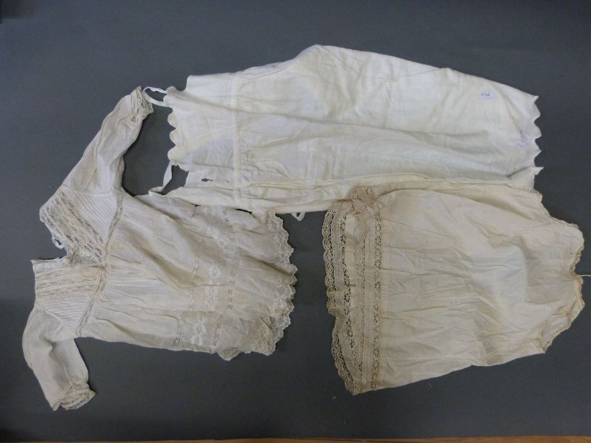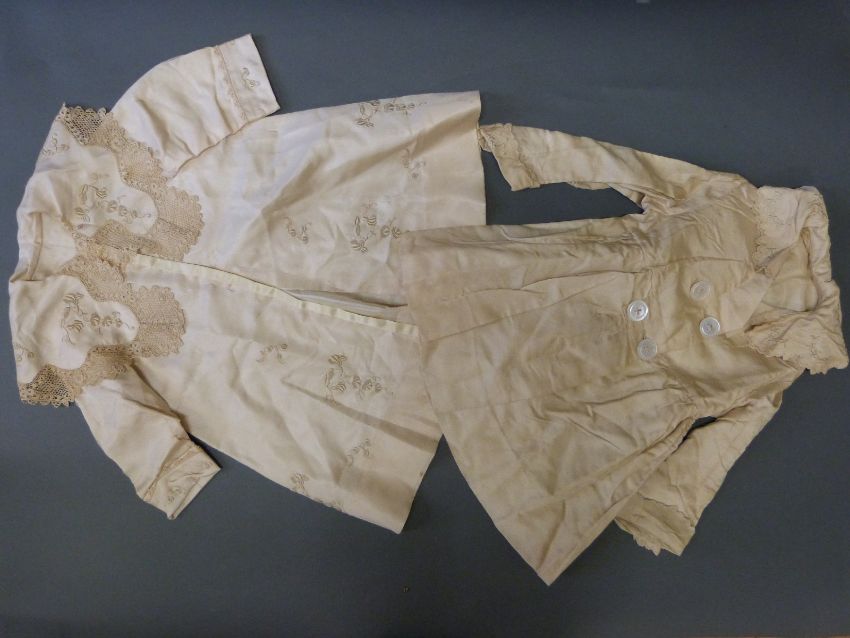 A collection of late 19th/early 20thC child's clothing to include ivory silk coats, christening gown, cotton undergarments etc.