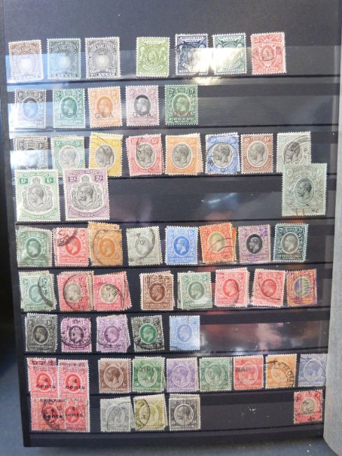 An extensive selection of mainly Commonwealth stamps, Victoria - QE II, in albums and stockbooks, includes South Africa, East Africa, Sarawak and Malaya