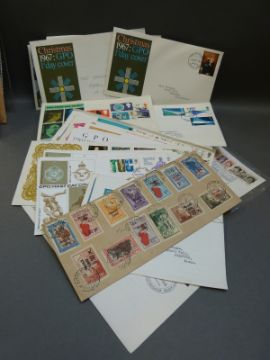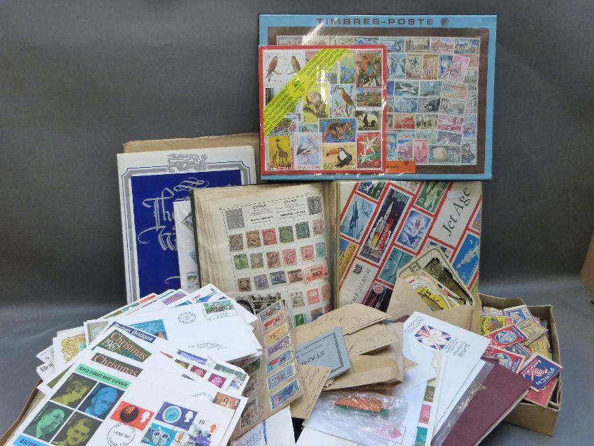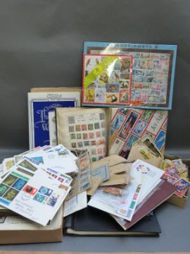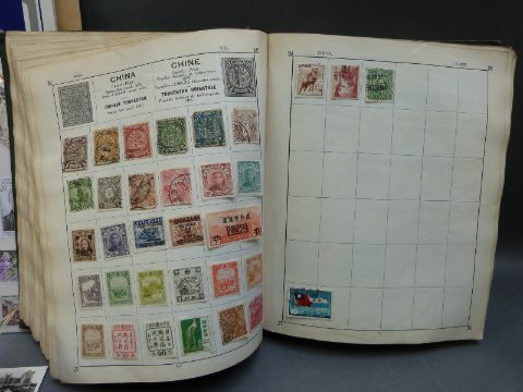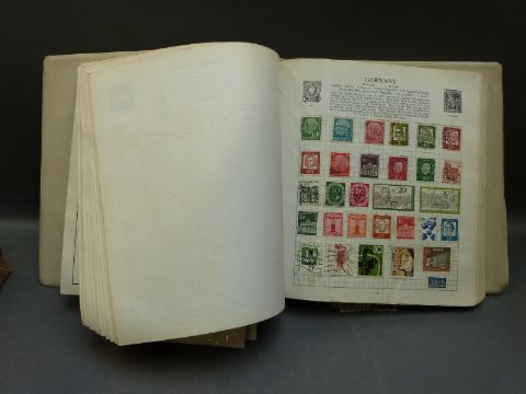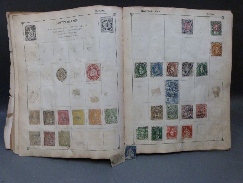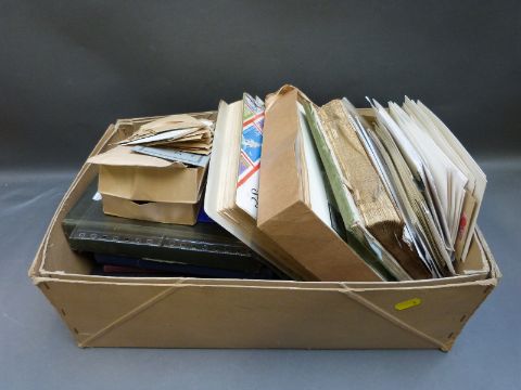 A box of all world stamps including early albums, covers and loose album sheets, all reigns