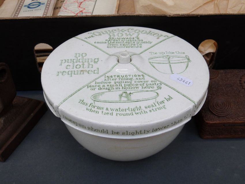 A quantity of collectable items to include a Titanic newspaper, Quick-Cooker bowl, iron, Victoria Commemorative etc, late 1930's London Transport maps