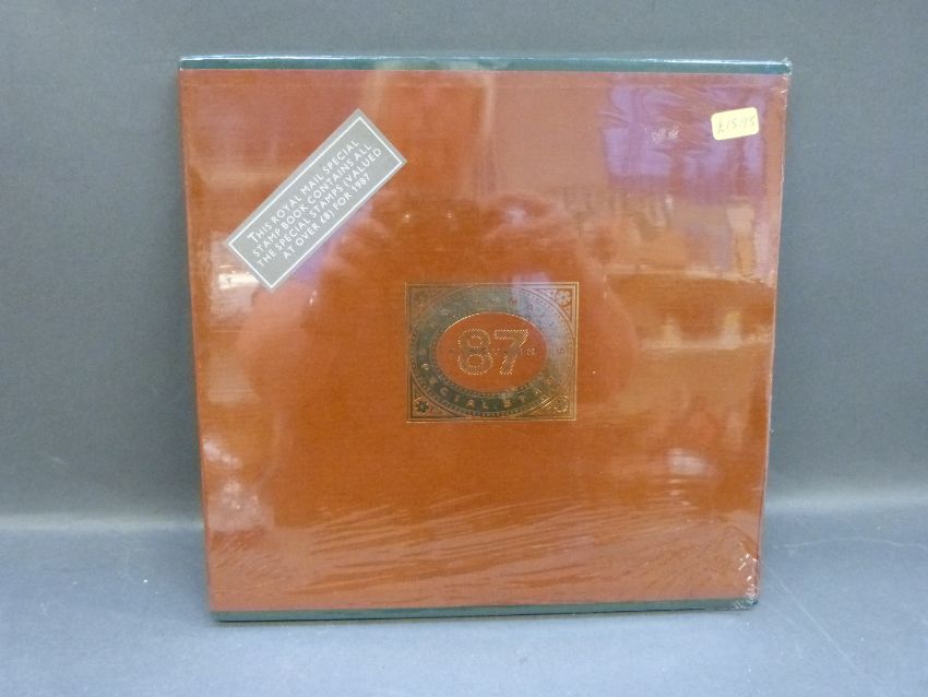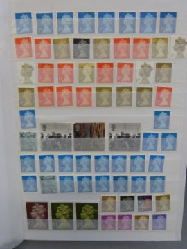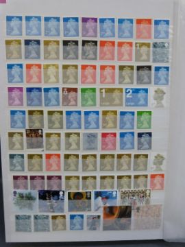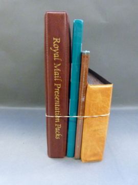 A box of GB presenation packs, booklets, a yearbook and a stockbook of mostly unused postage stamps