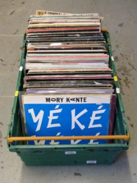 A box of 12inch singles, mostly pop