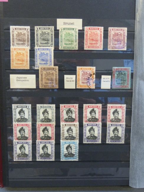 A stockbook containing a mint and used collection of GB and commonwealth stamps QV - QE including some Japanese occupation opts.