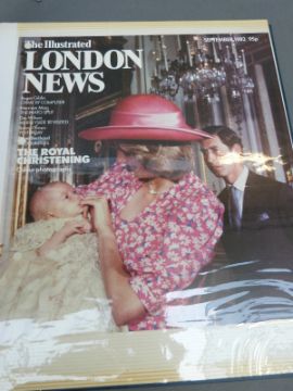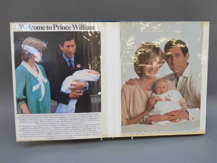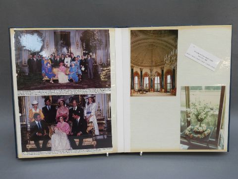 A scrap book containing half an official Christmas card and various colour clippings of the Royal Family