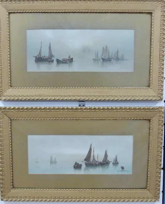 A pair of Garman Morris maritime coloured prints, each 17 x 45cm in gilt frames