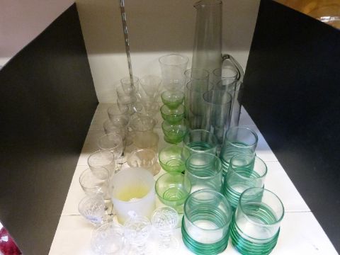 A collection of drinking glasses and a jug