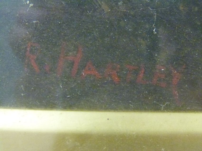 R Hartley oil on board 'One of Drake's Sea Dogs' collared gentleman, signed lower left, 51 x 41cm in gilt frame with title and artist's name to mount