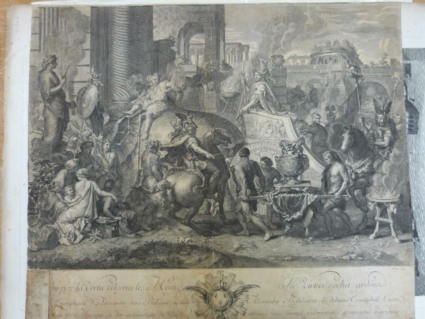 A collection of late 18th/19thC and other engravings including Hogarth, classical scenes etc