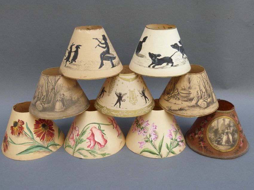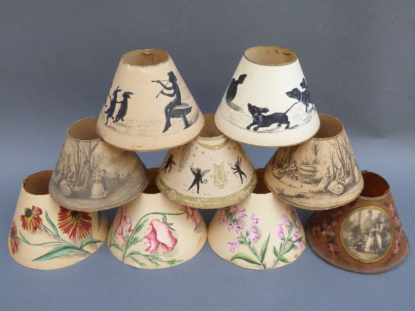 Nine hand painted paper lamp shades