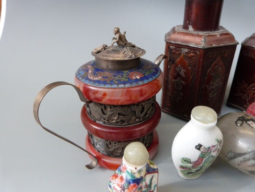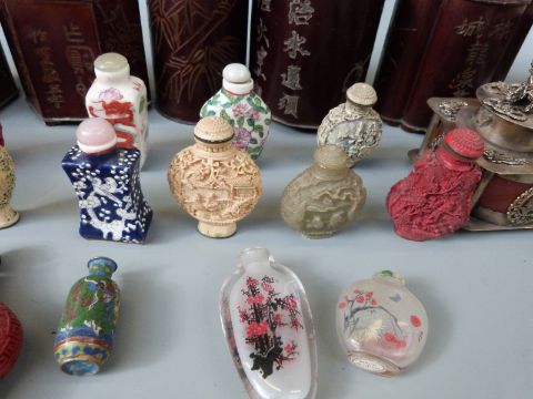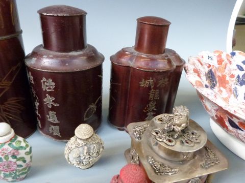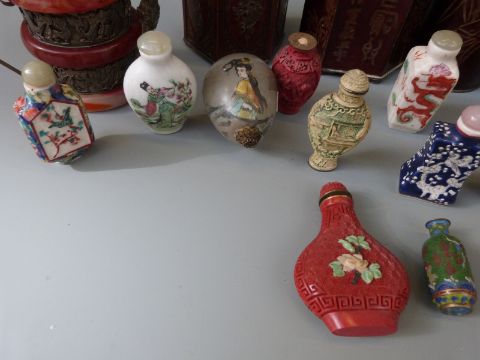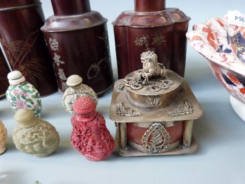 A collection of Chinese and Japanese scent bottles and tea caddies