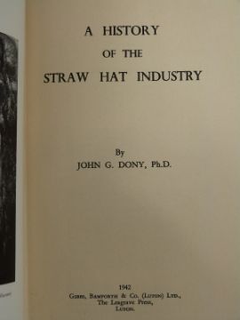 A History of the Straw Hat Industry by J G Dony, first edition with dust jacket