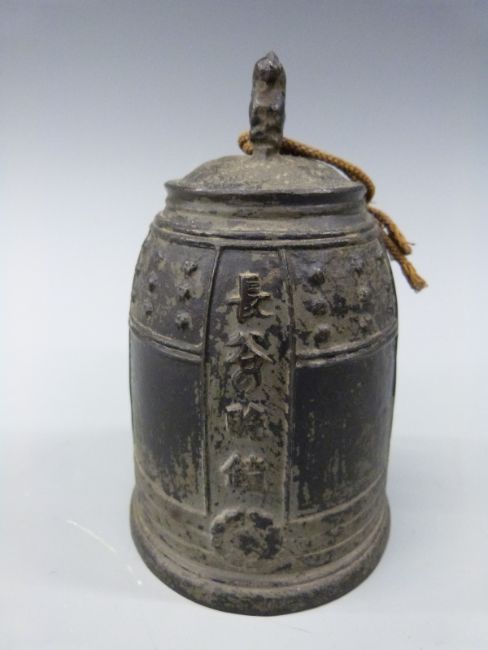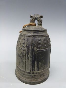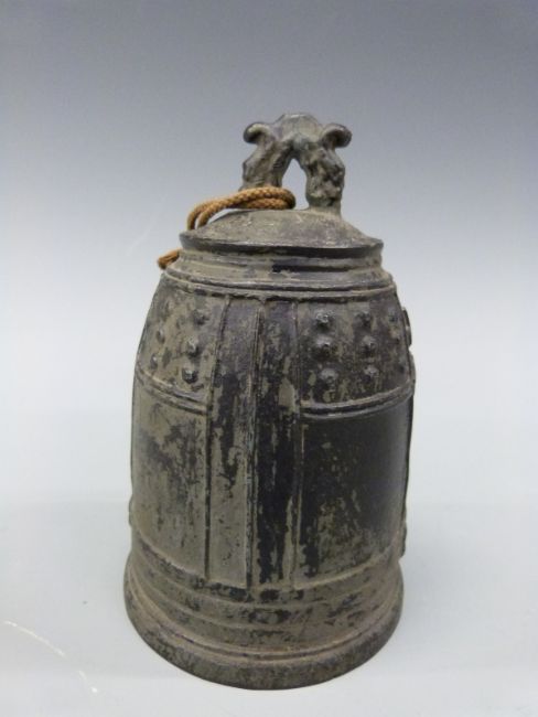 A Tibetan / Chinese bronze temple bell, 15cm tall