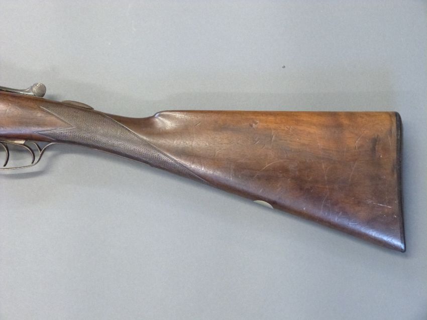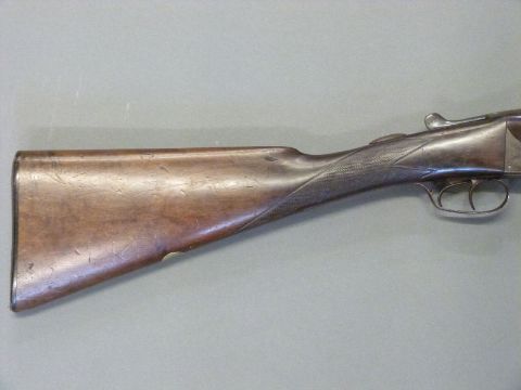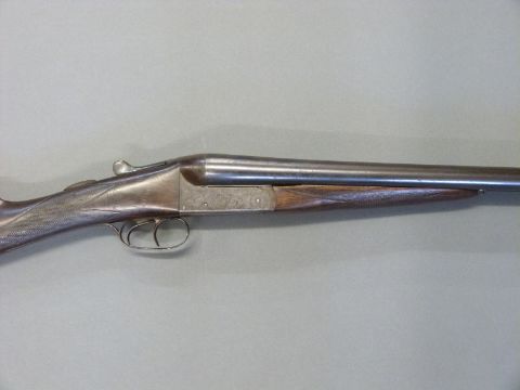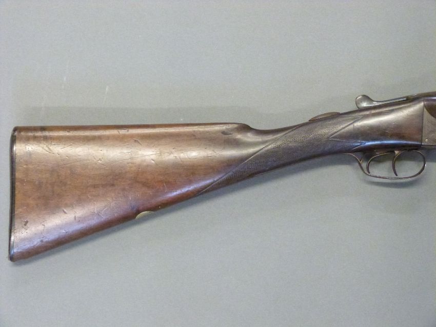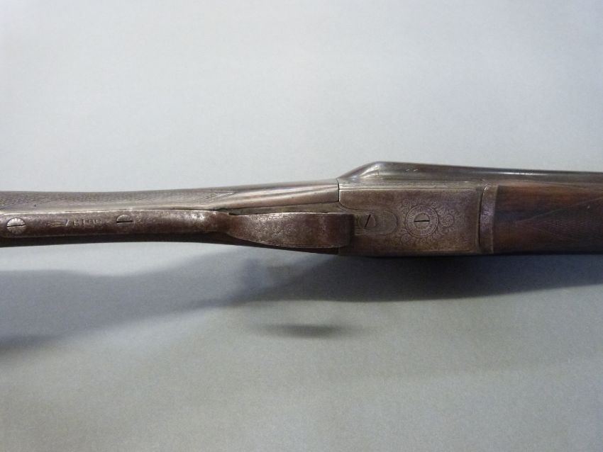 Holloway & Naughton 12 bore side by side shotgun with named and engraved locks, chequered grip and forend, double trigger, engraved trigger guard, top plate, top lever and underside, vacant cartouche to underside of stock and 28 inch barrels choked 1/2 and 3/4, overall length 102.5cm, length of pull 37cm, serial number 36197. PLEASE NOTE THAT A VALID RELEVANT FIREARMS/SHOTGUN CERTIFICATE IS REQUIRED TO HANDLE/PURCHASE THIS ITEM.