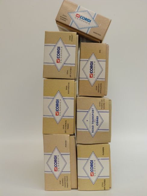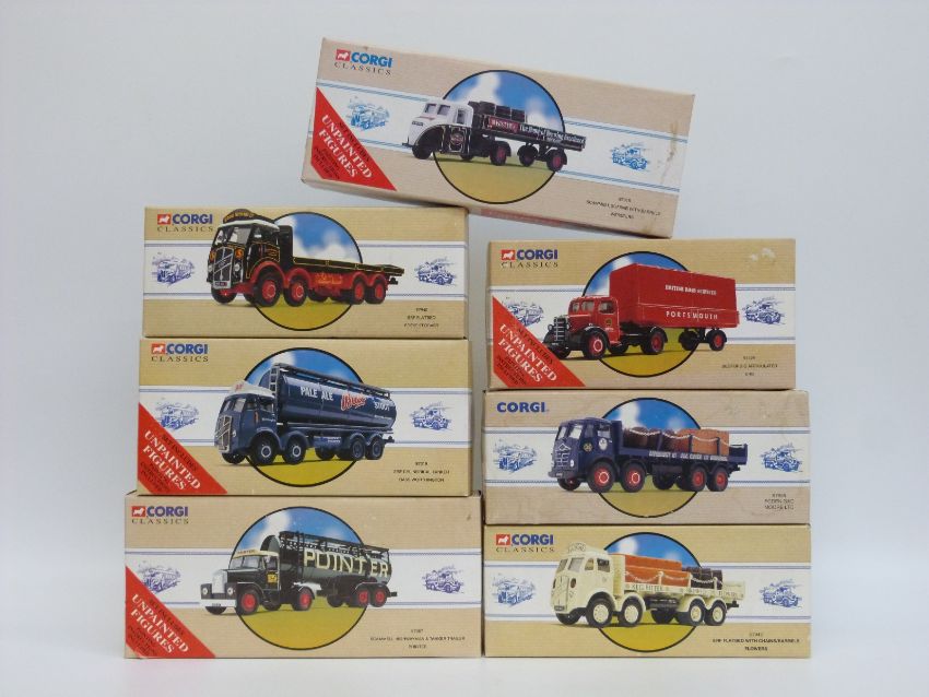 Seven Corgi Classics Road Transport diecast model lorries, Pointer 97367, British Road Services 97329, Websters 97318, Eddie Stobart 97940, Flowers 97942, Bass Worthington 97319 and Foden G & C Moore Ltd 97955, all in original boxes