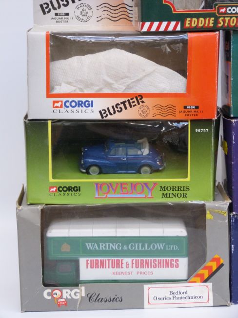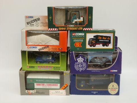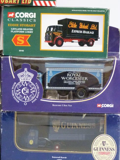 Seven Corgi and Corgi Classics diecast model vehicles, Guinness 15007, Royal Worcester 19307, Bedford 0 Series Pentechnicon C953/2, Lovejoy 96757, Buster 01801 and Eddie Stobart 56702 and 25102, all in original boxes