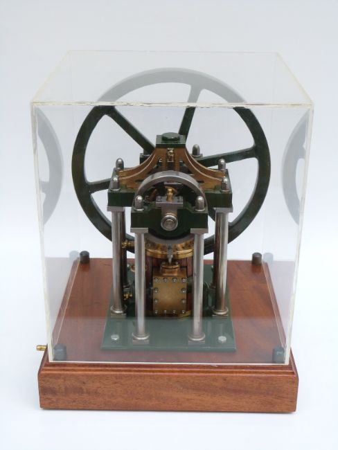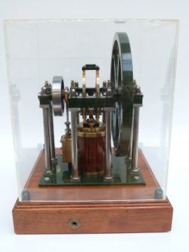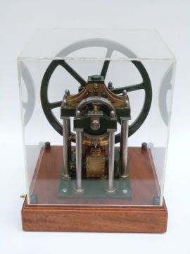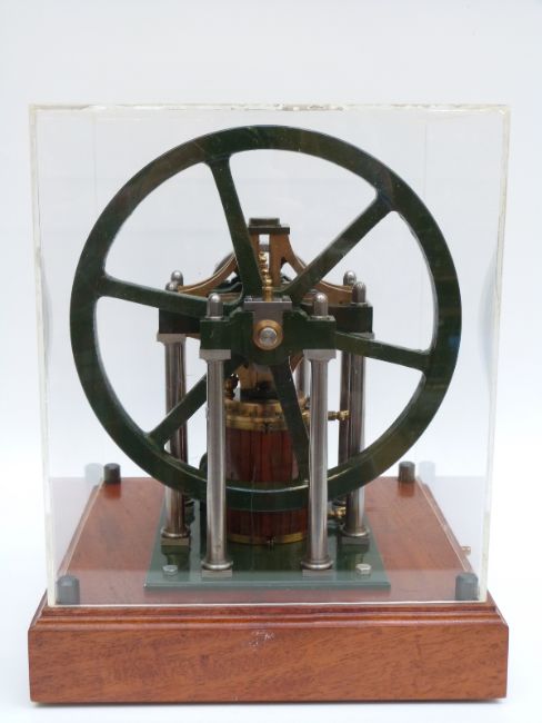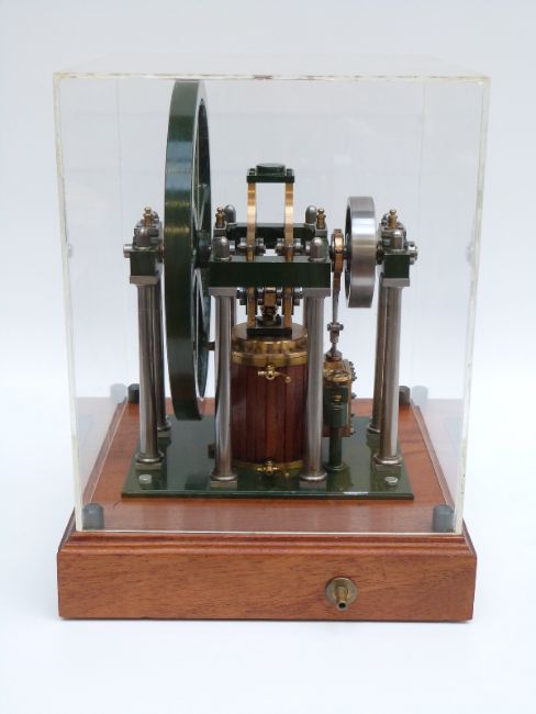 James Booth's rectilinear model live steam stationary engine in display case, height 32cm