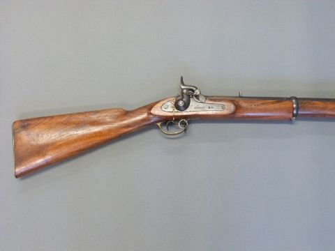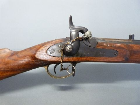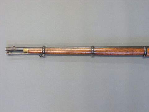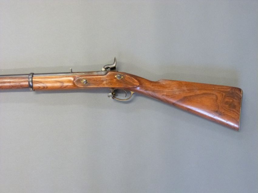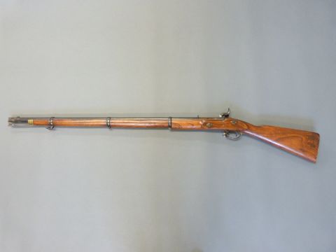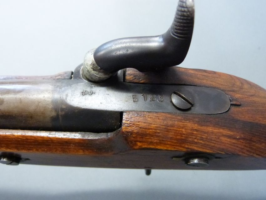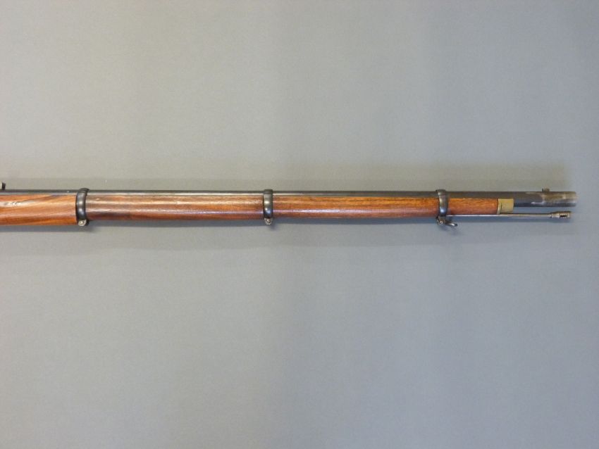 Enfield pattern 13 bore three band percussion hammer action musket with lock stamped with crown cypher and double stamped Enfield, brass butt plate and trigger guard, sling suspension loops, steel ram-rod and 36 inch smooth bored barrel, overall length 130cm, serial number B183. PLEASE NOTE THAT A VALID RELEVANT FIREARMS/SHOTGUN CERTIFICATE IS REQUIRED TO HANDLE/PURCHASE THIS ITEM.