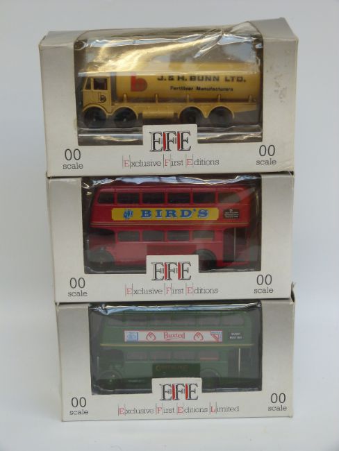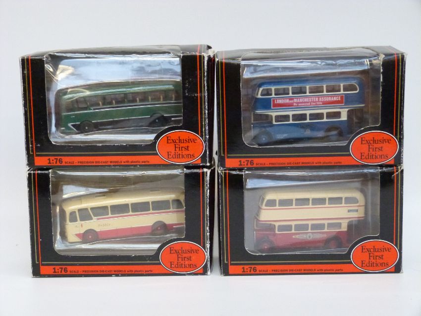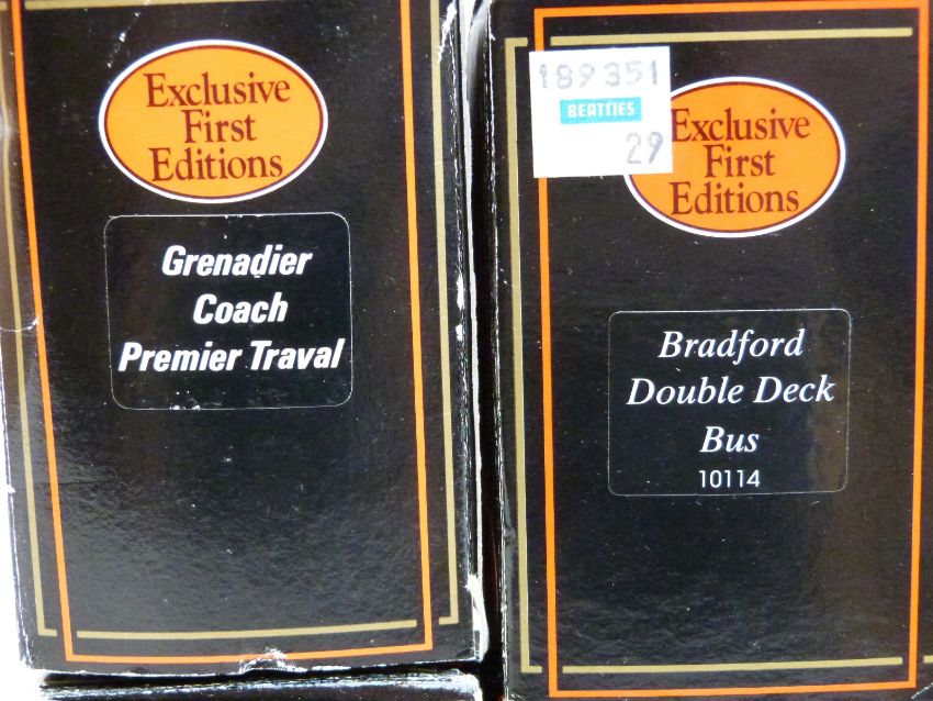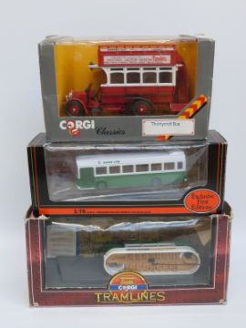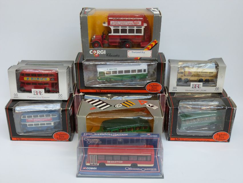 Twelve Corgi Exclusive First Editions (EFE) and Original Omnibus Company (OOC) diecast model buses and trams, all in original boxes