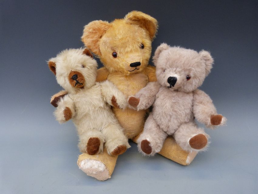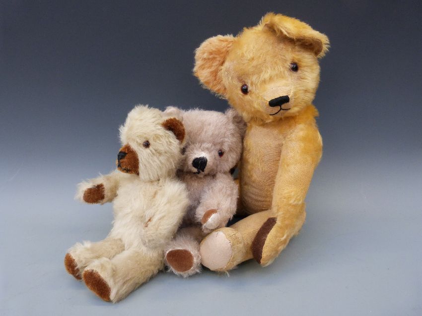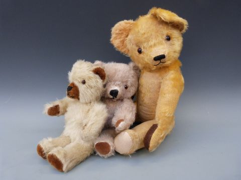 Three vintage teddy bears including a jointed mohair example