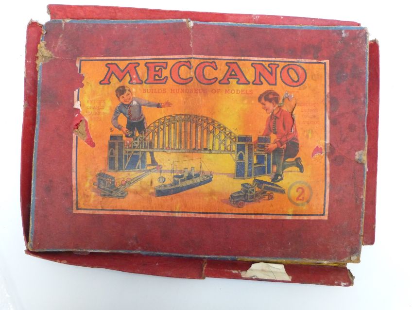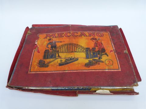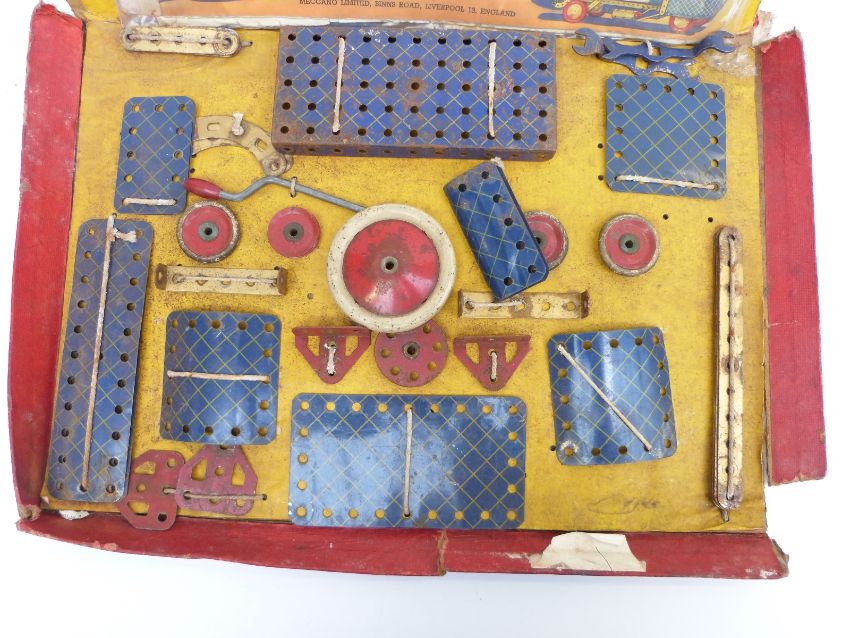 Meccano outfit No 2 with blue and yellow parts, in original box