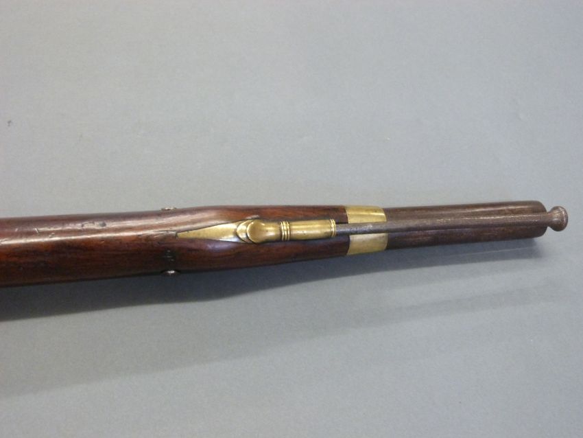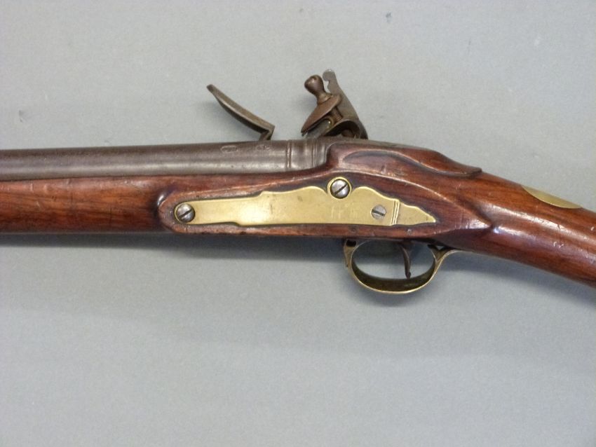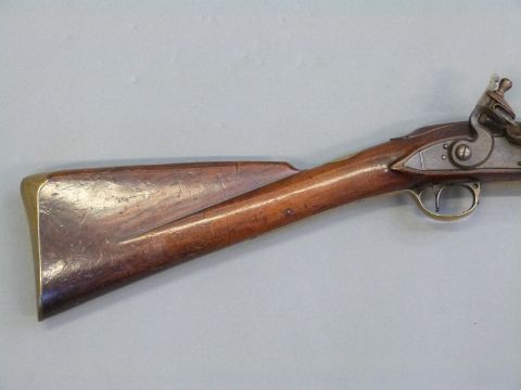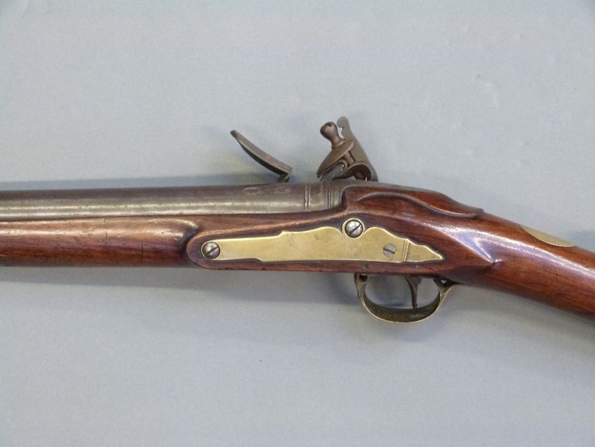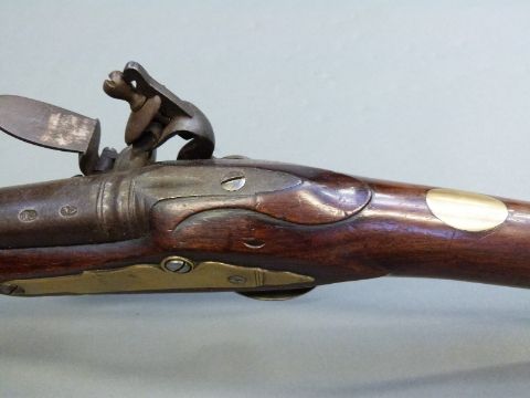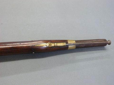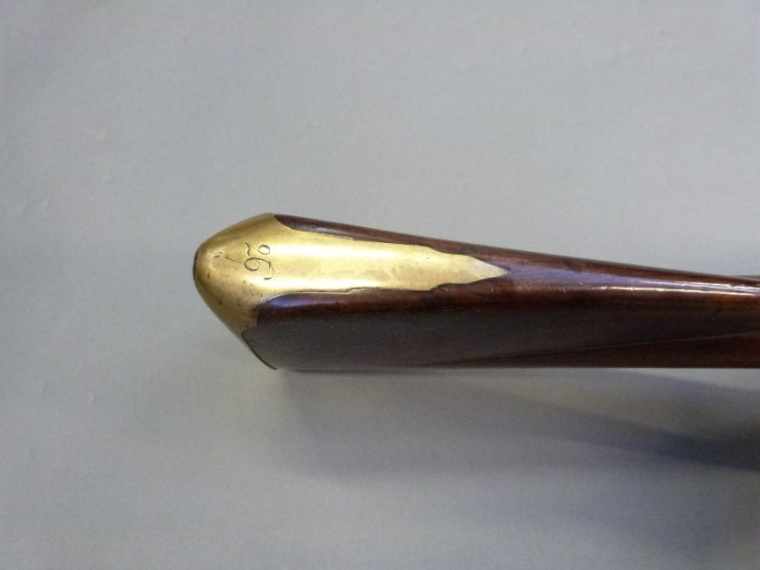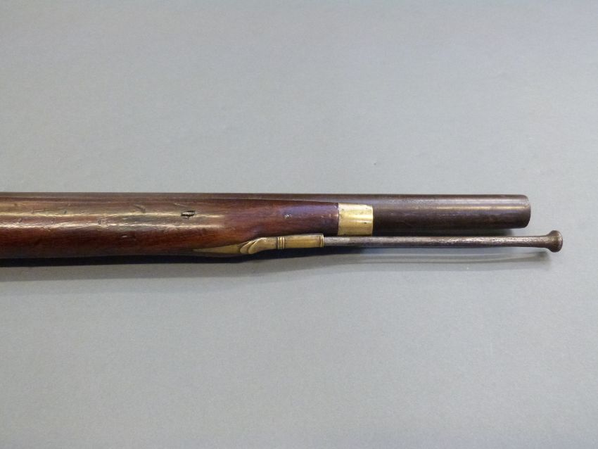 Harvey Walklate Mortimer of London 12 bore flintlock hammer action coaching gun with named lock, brass trigger guard, butt plate, mounts and vacant wrist cartouche, shaped stock, steel ramrod and 19 inch named smooth bored steel barrel, overall length 87cm.