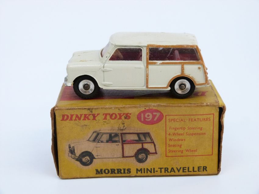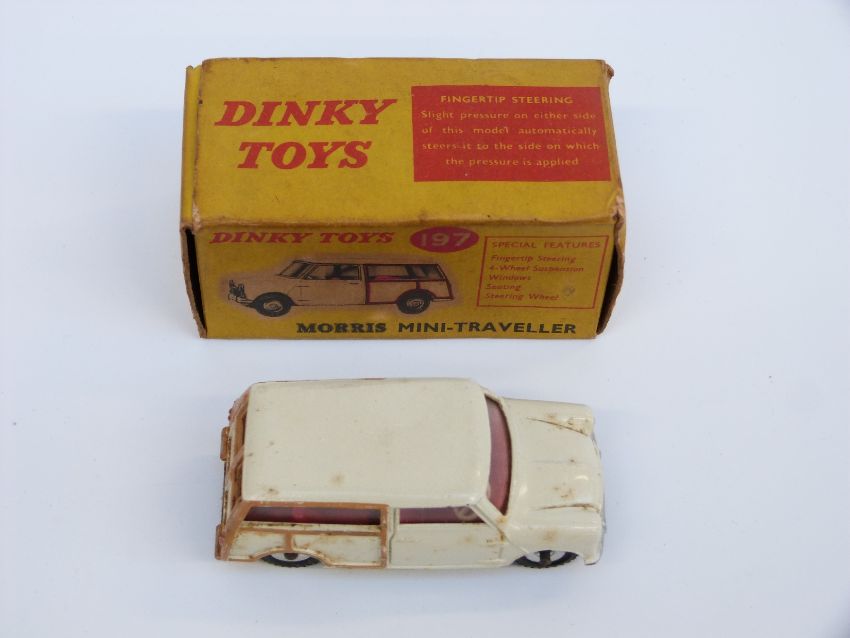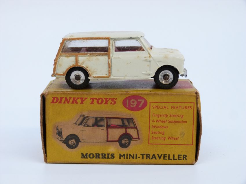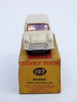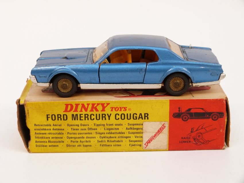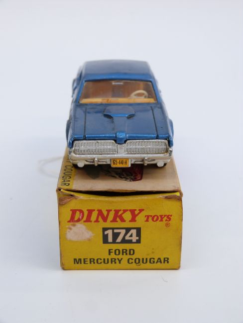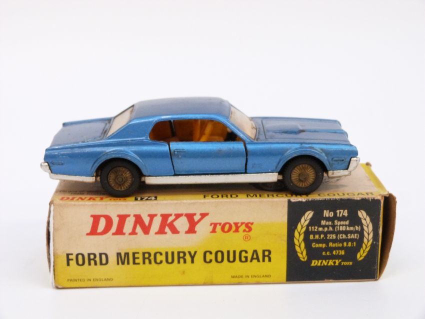 Two Dinky Toys diecast model vehicles Ford Mercury Cougar 174 and Morris Mini-Traveller 197, both in original boxes