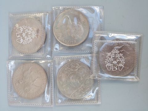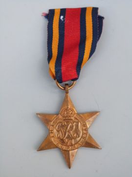 WWII Burma Star and Defence Medal with five commemorative coins and South African Christmas tin etc