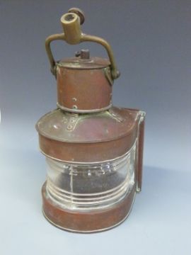 A copper ship's masthead or similar lamp, height 38cm