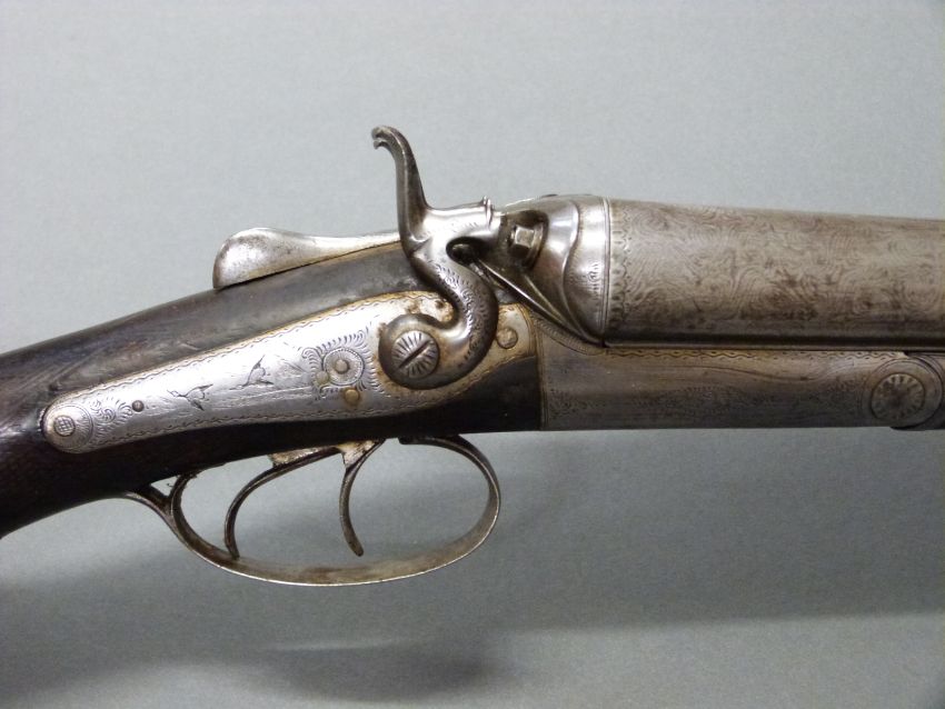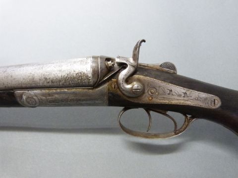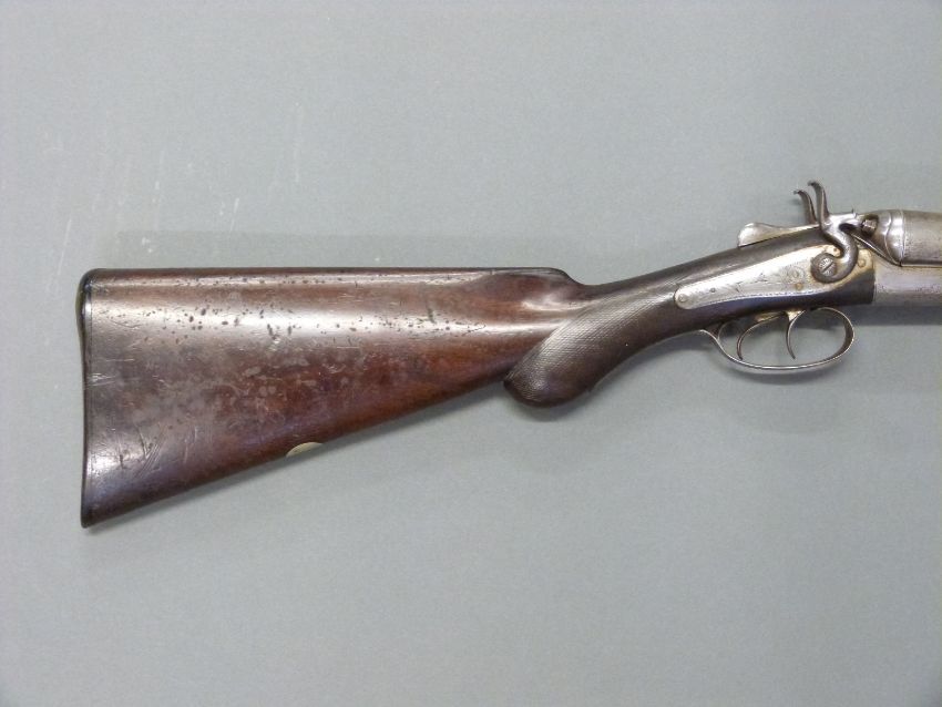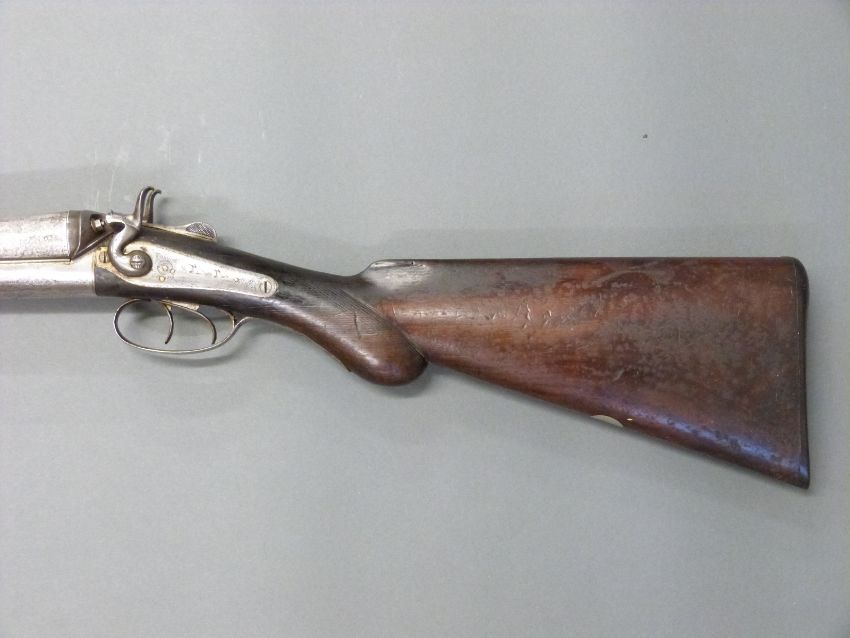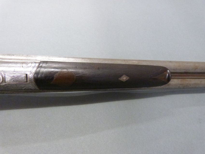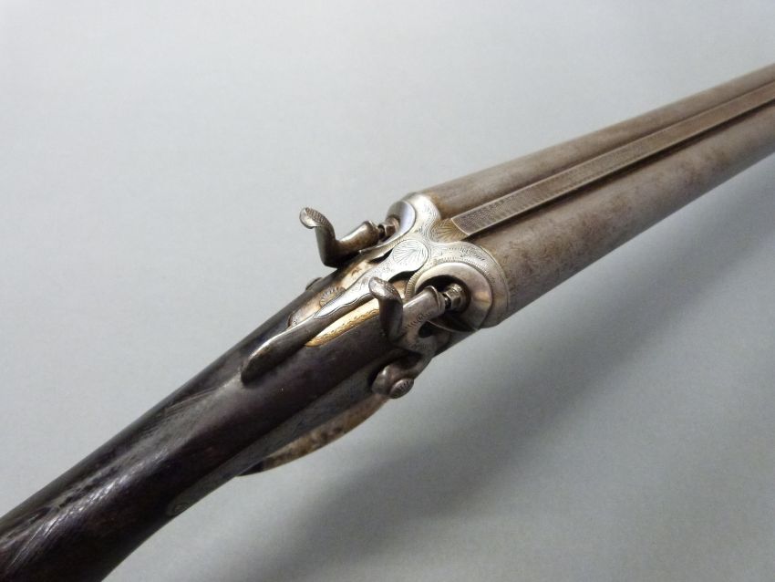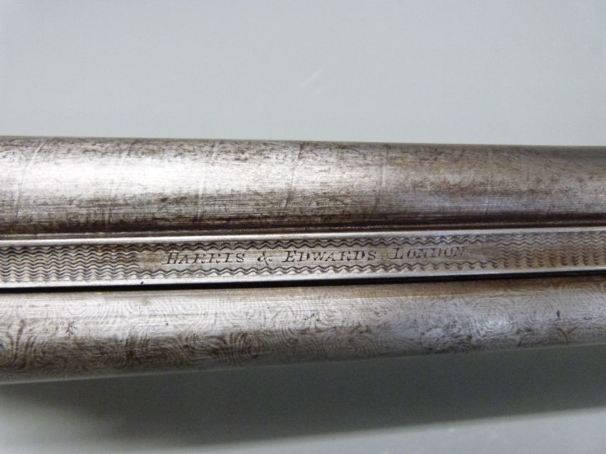 Harris & Edwards of London 12 bore side by side hammer action shotgun with engraved scenes of birds to the locks, stylised hammers, chequered semi-pistol grip and forend, vacant cartouche to the underside of the stock, double trigger and named 29 inch Damascus barrels, overall length 115cm, length of pull 36cm, serial number 2702. PLEASE NOTE THAT A VALID RELEVANT FIREARMS/SHOTGUN CERTIFICATE IS REQUIRED TO HANDLE/PURCHASE THIS ITEM.