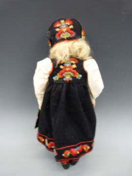A 1930s felt doll, probably Norah Wellings for Chad Valley, blonde hair with glass eyes, dressed in Tyrolean costume, approximately 43cm tall