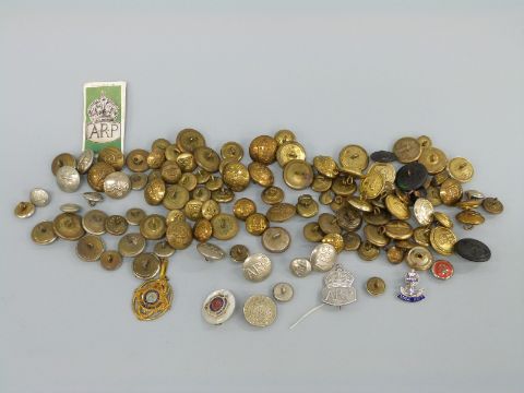 WWII military buttons including Royal Navy, Royal Air Force, Royal Signals and Royal Army Ordnance Corps together with mother of pearl Royal Army Service Corps sweetheart brooch etc