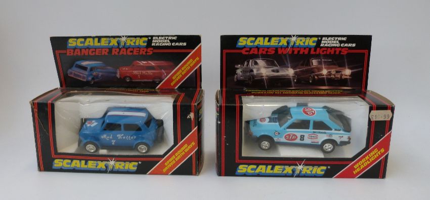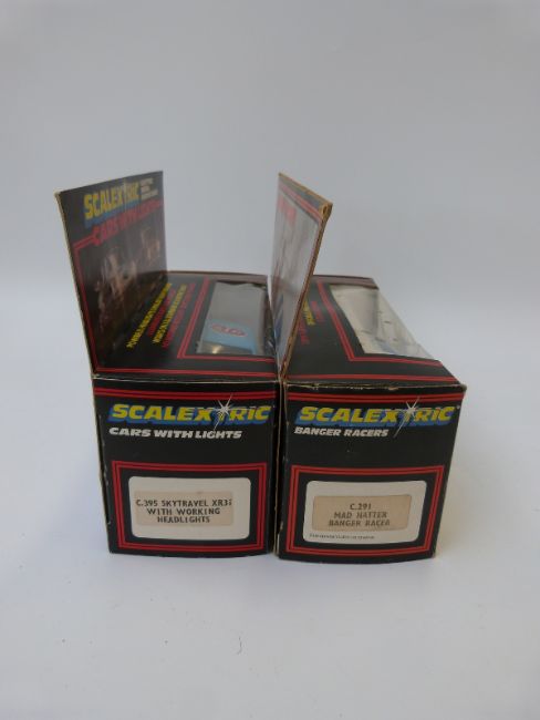 Two Scalextric electric model racing cars Banger Racers Mad Hatter Banger Racer C291 and Cars with Lights Sky Travel XR3i with working headlights C395, both in original boxes