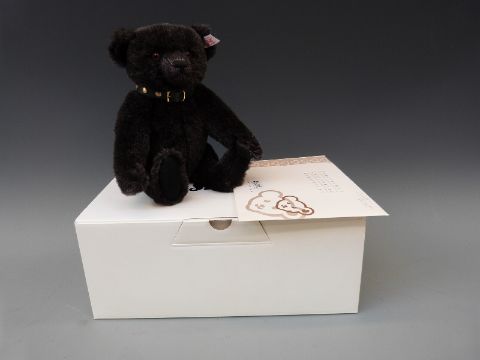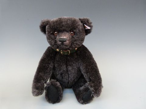 Steiff Teddy bear Jack The Rare Black Alpaca Bear with black mohair, shaved snout, metal studded collar and jointed limbs, 26cm tall, limited edition 3228/5000 in original box with certificate